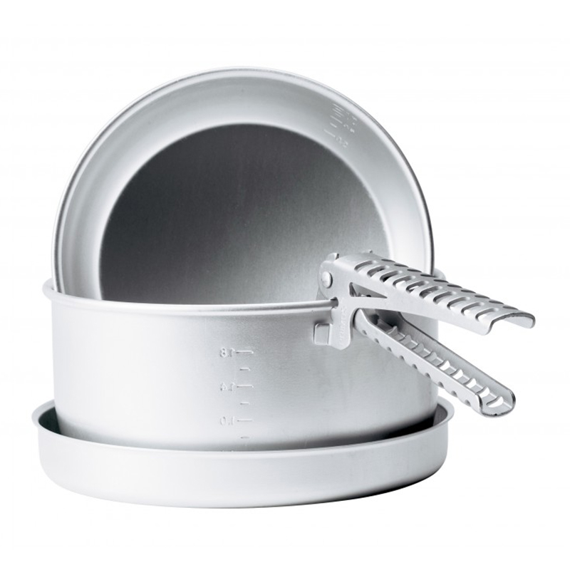 Acest set de oale Primus este foarte usor, util pentru camping, continand 2 oale din aluminiu, una de 1.7 litri si una de 2.1 litri. Manerul de apucare este o unealta foarte utila, iar tigaia poate fi folosita ca si capac.Tot setul se transporta intr-un saculet din panza.