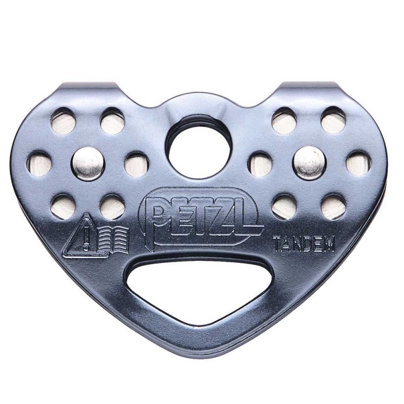 Scripete Petzl Tandem Speed construit in mod special pentru sisteme de tiroliene pe cablu de otel dar si coarda. Bilele din rulmentul acestui scripate sunt din otel inoxidabil pentru a se putea obtine o viteza sustinuta indiferent de greutatea persoanei, temperatura sau umezeala. pentru o mai mare versatilitate, sistemul de atasament accepta 3 carabiniere